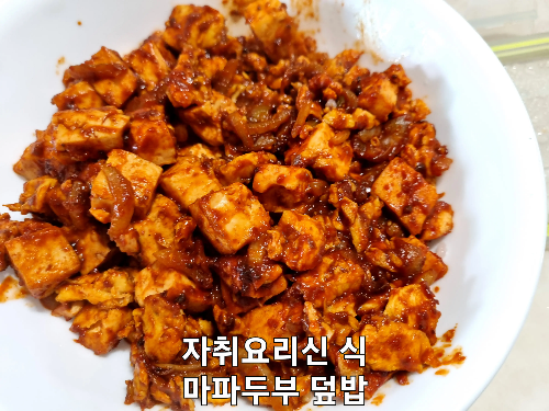 밖에서 먹는 마파두부와는 살짝 느낌이 다르지만 마파두부 느낌의 덮밥이다.