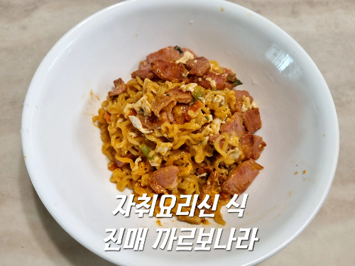 원래 레시피는 진라면 순한맛을 사용하지만, 집에 웬만해서는 진순이 없기 때문에 진라면 매운맛으로 대체했다.