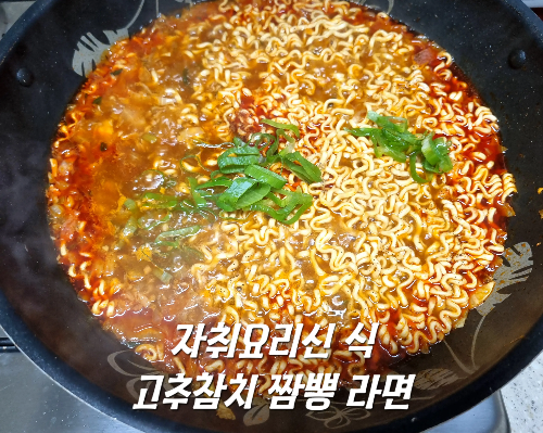 간짬뽕과 동원 고추참치는 그대로 사용했다. 대파, 양파, 양배추도 레시피대로 사용했다.