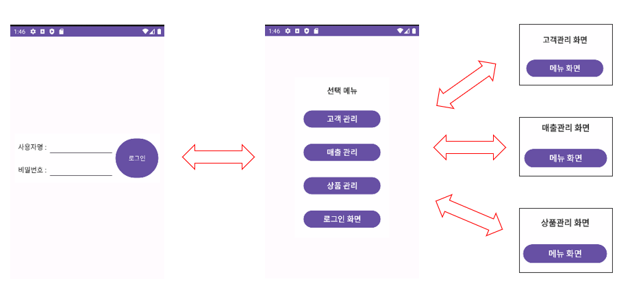 ** 해당 Intent들에 전달용 메시지 지정 : intent.putExtra("titleMsg", "고객관리 화면");