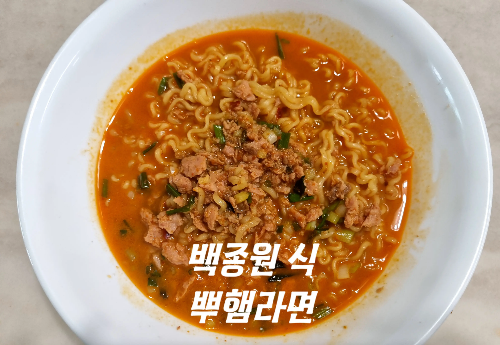 빽햄 대신 집에 남아 있던 리챔을 사용했다. 라면은 똑같이 진라면 매운맛을 사용했다.