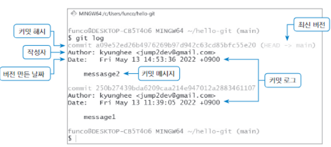 git log : 리포지토리에 저장된 버전을 확인할 때 사용한다.