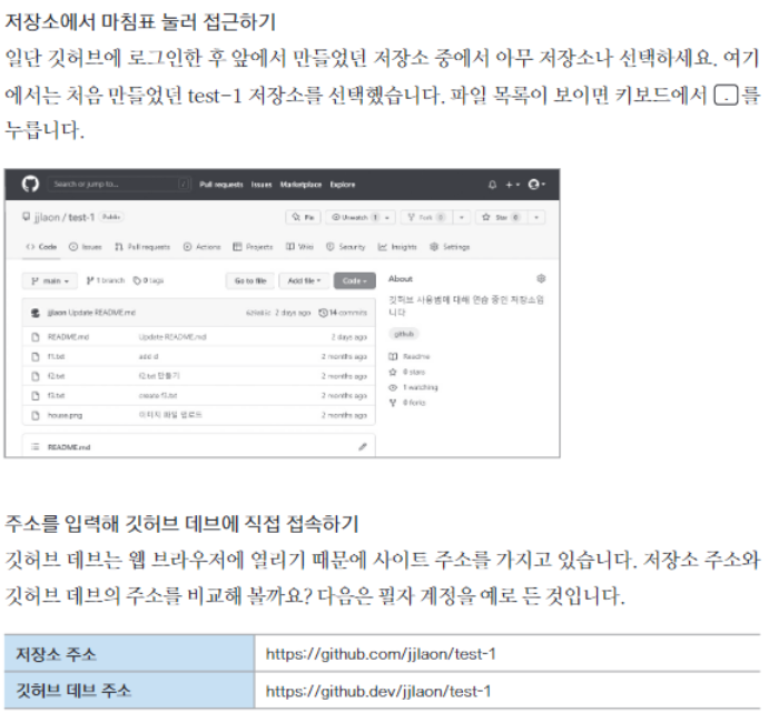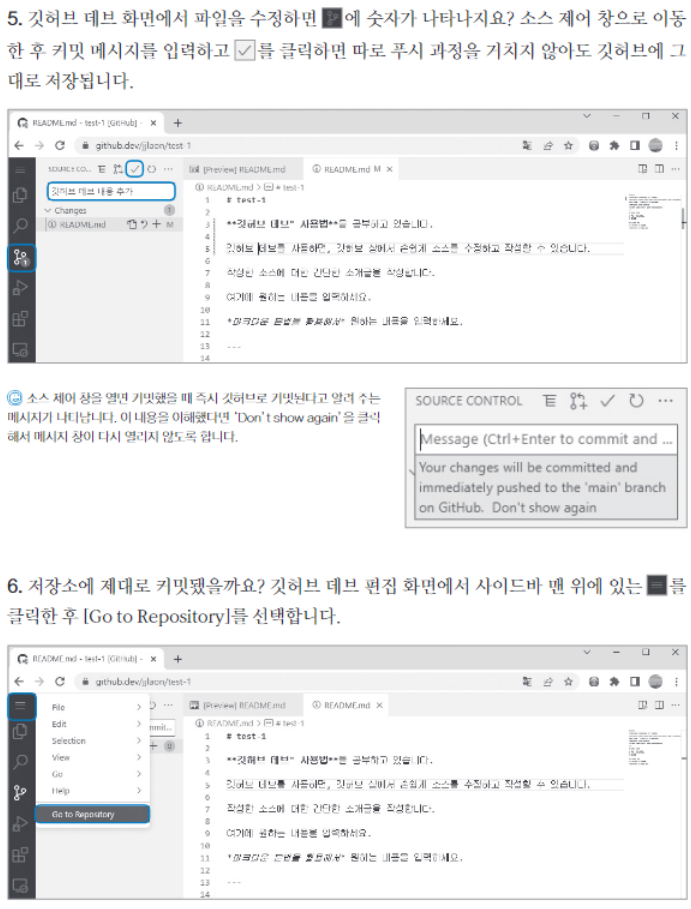 깃허브 데브는 웹 브라우저에서 VSCode를 열어 리포지토리의 소스를 수정할 수도 있고, 깃허브로 다시 푸시할 수도 있다.