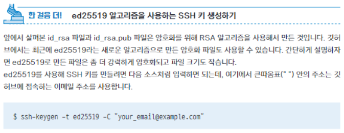 ※ 2024년 3월 현재는 자동으로 ed25519 알고리즘을 사용하는 SSH 키를 만들어 주는 것 같다!