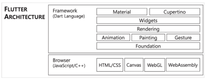 따라서 Flutter로 웹 서비스를 개발하는 경우에는 기존과는 다른 내부 아키텍처를 갖는다.