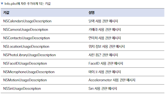 NSAppTransportSecurity는 http 프로토콜을 허용하는 키-값이지만, 앞으로 Info.plist에 입력할 값들은 대부분 앱에서 이미지, 카메라 등 권한 요청을 할 때 보여줄 메시지를 정의한다.
